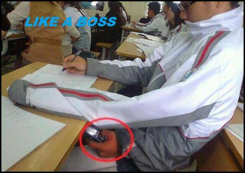 He should probably spend as much time studying as he does inventing clever ways to cheat...