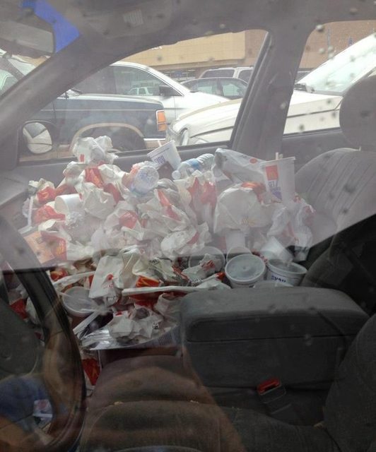 The ultimate Fast Food wrapper car pile...