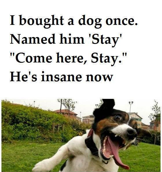 I bought a dog once and I named him "Stay"...