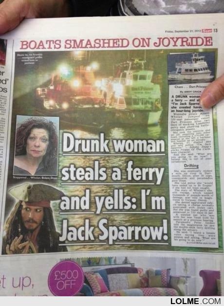 Drunk woman steals a ferry and yells I'm Jack Sparrow...