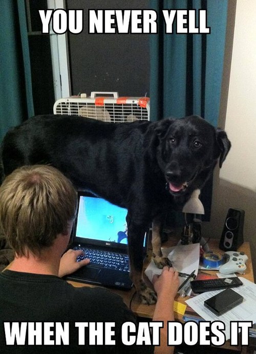 You never yell when the cat does it!